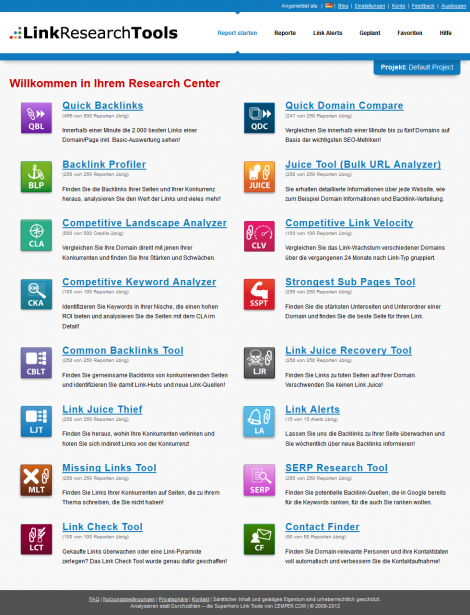 Auf dem SEO Tool Day der SEO Campixx 2012 stellte Christoph C. Cemper seine Link Research Tools vor. Dabei handelt es sich im Grunde um eine riesige Linkdatenbank, die alle möglichen Daten zu Millionen von Links enthält. Über die Weboberfläche der Tools werden diese Daten gefiltert und aus der Datenbank ausgelesen. Dafür stehen innerhalb der “Cemper Tools” insgesamt 16 Module bzw. Tools zur Verfügung. Das Besondere an den Daten ist, dass sie laut Cemper zum Zeitpunkt des “Einlaufens” alle aktuell waren. Auch die PageRank-Daten werden live geholt.