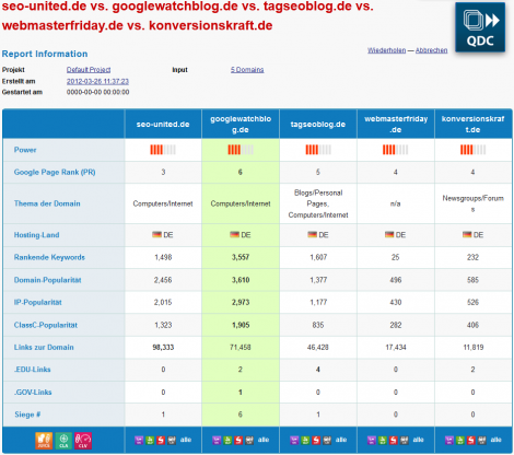 Dieser Schnellvergleich kann vor allem dann sinnvoll sein, wenn man sich für eine von fünf Seiten entscheiden muss um darauf einen Link setzen zu lassen.